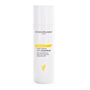 Krem z colostrum z linii PODOFLEX Podophram MED rekomendowany jest do pielęgnacji stóp suchych, wrażliwych, pękających i wymagających regeneracji. Skoncentrowana formuła preparatu oparta jest na technologii ciekłych kryształów oraz innowacyjnym składniku - colostrum bovinum z 40% tłuszczem. Colostrum jest cenione ze względu na swoje dobroczynne właściwości. Mieszanka naturalnych olei takich jak: buriti, kokosowy, z oliwek i masła shea, nadaje stopom głębokie nawilżenie, miękkość i elastyczność. Sok z aloesu, allantoina, ekstrakt z kasztanowca działają regenerująco i niwelują pieczenie. Krem do stóp z colostrum Podoflex polecany jest dla diabetyków oraz kobiet w ciąży.